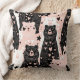 Uma almofada de lançamento com padrão contínuo encantador com ursos gorduchos adoráveis em tons neutros e brancos, colocada contra um fundo rosa suave com bolinhas espalhadas. Esta ilustração lúdica e adequada para crianças é perfeita para um espaço temático de floresta suave. Sua paleta pastel aconchegante e estilo simples desenhado à mão tornam-na ideal para visuais doces e confortantes para crianças e bebês.