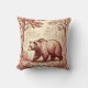 Uma safra que olha para a imagem de jouy de um urso vagando por uma floresta, em vivos castanhos vermelhos sobre um fundo bronzeado, torna este travesseiro decorativo perfeito para qualquer um que ama animais, vida selvagem, natureza e o exterior.