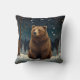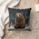 Travesseiro decorativo da paisagem de inverno com urso pardo retrô.