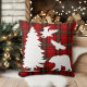 Um design elegante para o inverno com fundo de tartã vermelho, preto, verde e animais de floresta e árvore!