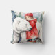 Rapariga de aquarela bonita vestindo um casaco vermelho com um urso polar