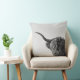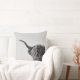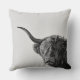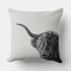 O coxim do travesseiro decorativo da foto com uma vaca resistente mas engraçada de Higland do Scottish com chifres grandes, uns cabelos longos na frente dos olhos e a metade da boca abre em preto e branco/monochrome. Grande decoração em seu sofá.