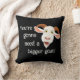 Um travesseiro engraçado com o rosto de uma cabra feliz de desenho animado, e as palavras Você vai precisar de uma cabra maior! Uma reviravolta na famosa citação do filme sobre tubarões. Fabulosa ideia de presente para amantes de cabras e guardiões de cabras.