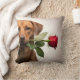 valentine dog holding rose portrait, cute dog romantic valentine concept, animal love theme with red rose stock image, valentine day pet photography background, romantic cute dog image for valentine.