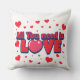 Embrace the power of love with this charming square pillow, featuring the iconic phrase “All You Need is Love” in bold red and blue typography. The white background is adorned with playful red hearts, making it a delightful addition to any living space. Soft, cozy, and stylish, this pillow is perfect for expressing your affection or adding a romantic touch to your home decor.