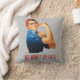 O travesseiro decorativo de protesto pelos Direitos das Mulheres apresenta o estilo de vintagem da cor do cheio Rosie the Riveter e o texto "nós não vamos voltar" no fundo da cinza.