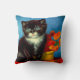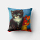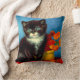 Travesseiro com um lindo gato de smoking Van Gogh! Esta pequena gatinho se posiciona ao lado de uma cesta de flores laranja sobre uma mesa vermelha. Um presente de excelente para amantes de gatos e colecionadores de arte holandeses!