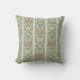 Um travesseiro decorativo ou um coxim com as flores do clematis do marrom da oxidação do nouveau da arte e as folhas do verde prudente arranjaram em listras do estilo da regência, com as Linhas Verdes finas que limitam bandas verdes pálido lisas.