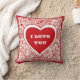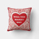 Uma almofada de travesseiro decorativo de casamento vermelha e branca com "Eu te amo na frente e você me Casado?" na parte de trás. Para alterar o texto, clique no botão personalizar. Esta design foi criada para a IA.