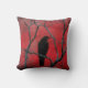 Travesseiro vermelho gótico com corvo.