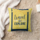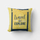 Mostre seu espírito aventureiro com este Travesseiro divertido de "Viagem e Explorar". Listras amarelas/brancas brilhantes e fundo azul marinho com uma nota pontilhada que diz: "Viagem e explorar" tocado com um arco polkadot amarelo e branco brilhante.