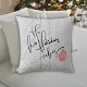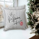 Fesestivo Suéter Cozy Textura Feriada Vibes Travesseiro decorativo de Natal. Tecido branco de suéter com as letras pretas "Ho ho Holiday Vibes" e Enfeites de natal vermelho.