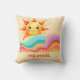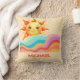 Ilumine qualquer berçário com este travesseiro infantil temático de verão alegre e vibrante. O design apresenta um sol sorridente e amigável surgindo sobre uma série de ondas coloridas e fluidas de arco-íris contra um fundo azul suave. Este acessório aconchegante é uma adição ideal para um berçário moderno boho ou um presente atencioso para o aniversário de um toddler.