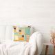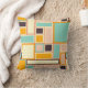 A vibrant abstract pattern with rectangles of varying sizes in teal, orange, peach, and cream tones, outlined in dark brown. Geometric and retro feel.