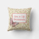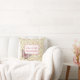 O travesseiro decorativo bonito apresenta fundo floral do chique, borboleta rosa e uma citação elegante "Live a Life Uncommon" na fonte do script rosa