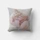 Uma casca de mar pastel rosa e vidro marinho em uma cama de areia praia é um design adorável para este travesseiro.