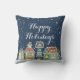 Uma cena bonito da neve do inverno, por Cindy Bendel, com uma fileira de casas lunáticas. Os flocos de neve estão caindo do céu azul escuro da noite nas casas e na terra. A neve está começando acumular nos telhados. O texto diz boas festas mas você pode personalizá-lo com seu próprio texto. Este travesseiro decorativo do feriado faz um grande acento a sua decoração do Natal. LLC criativo do design de Cindy Bendel do © todos os direitos reservados.
