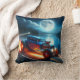 Uma vareta quente clássica se acelera ao longo de uma enrolamento ao lado de um lago sereno, chamas atirando de seus pneus sob uma lua de cheio radiante, cercada por montanhas torrenciais e árvores exuberantes.