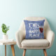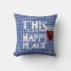 Almofada vinho tinto e citação do gingham azul