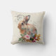Um travesseiro de linho falsa com um carimbo postal francês vintage e um adorável travesseiro decorativo de coelho aquoso e flores. No reverso deste travesseiro está um padrão de renda suja. Este travesseiro de designer fará uma adição muito na moda a qualquer interior doméstico. Perfeito para o seu decorador de primavera ou páscoa, assim como para o quarto e quarto de criança. © Julie McIver