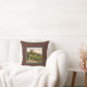 Travesseiro decorativo com um fotógrafo vintage do Castelo de Drummond, na Escócia, de 1895, fotografa um grande castelo vermelho de arenito com jardins formais e uma estátua em primeiro plano. Limpo, melhorado e renderizado artificialmente para se assemelhar a caneta e tinta com aquarelas. Agrupado e apoiado com o Clan Drummond de Perth tartan, um padrão tradicional de xadrez escocesa em tons de vermelho, azul e verde, com realces de ouro e branco.