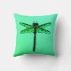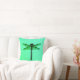 Vintage desenho em pincel japonês de uma libélula, digitalmente melhorada e colorida, em tons de esmeralda e azul-esverdeada, em um travesseiro decorativo de fundo ombre suave e sombreado
