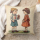 Vintage kids artwork on pillows that captures timeless childhood moments. A charming vintage-style illustration of children, perfect for nostalgic art and decor.