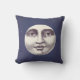Marinho azul estrelado, travesseiro decorativo decorativo de padrão celeste azul com um homem vintage na face da lua de um lado e um céu azul estrelado sólido no reverso.