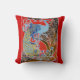 Um travesseiro decorativo com uma ilustração vintage de Gisbert Combaz de um pavão azul de 1898, encomendado como exposição poster de uma sociedade artística baseada em Bruxelas.
