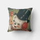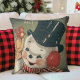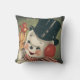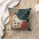 Este adorável travesseiro de vintage apresenta um boneco de neve do século médio alegre em um chapéu preto e um cachecol vermelho e branco com um passarinho vermelho giro encravado em sua mão mitigada.