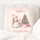 Bonito Primeiro travesseiro de Natal, decoração infantil, com um adorável bonitinho de neve e árvore de Natal, de cor-de-rosa pincelada com vibrações vintage para meninas. Personalize facilmente o texto ou deixe-o vazio. - Kate Eden Art