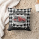 Adicione o seu nome familiar a este travesseiro de Natal com uma cena de inverno de um clássico caminhão vermelho batendo na neve com uma árvore de Natal no fundo. Uma faixa acima tem um nome de família para você personalizar com o seu. O fundo é um padrão de verificação de búfalos vermelho e preto com uma borda de pinheiros. Projetado por artista mundialmente renomado © Tim Coffey.