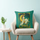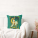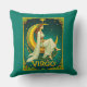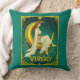 Travesseiro em uma mulher com vestes brancos fluidos, com uma flor no cabelo, sentada graciosamente em uma lua ouro crescente, cercada por estrelas. Ornamentado Art Nouveau enquadrado com flores, e a palavra "VIRGO", completam a ilustração celestial zodiac.