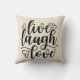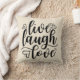 O ponto morto coloriu o travesseiro decorativo, com as palavras positivas, "vivo, riso, o amor." Misturar-se-á dentro com a maioria de decorações home. Lugar em alguma sala, adicionar um toque da positividade!