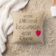Legal olhar para casa ou para burlap, sem a sensação de arranhar! Este travesseiro texturizado falso apresenta um aspecto ligeiramente curado e envelhecido. Nós pegamos apenas as últimas palavras da maravilhosa citação de Shakespeare "Quando eu te vi, eu me apaixonei, E VOCÊ CHEIROU PORQUE VOCÊ SABIA". Adicionamos também um coração rosa brilhante. A parte de trás apresenta a mesma textura com apenas o coração cor-de-rosa. Sinta-se livre para usar a ferramenta PERSONALIZAR TI para adicionar qualquer texto próprio. Este travesseiro de aparência excelente melhoraria qualquer estilo de chic, parisiense, cottage ou decoração em forma de fazenda. Escolha entre um travesseiro quadrado no estilo bolster de 20" x 20" ou retângulo de 13" x 21". Feitos de algodão tecido do grau A a 100%, nossos travesseiros parecem excelentes em qualquer quarto, do quarto à sala de estar, sala de família ou balanço da varanda da frente! Produzido por mães de solteiro que trabalham de forma sustentável nos EUA, sua compra personalizada de travesseiros contribui para quebrar o ciclo de pobreza para mães solteiros e seus filhos enquanto parece excelente em sua casa! Design de Scarebaby Design, apoiado pela garantia Zazzle.