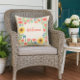 Welcome guests to your porch or patio with this vibrant floral pillow. This two-sided design can be personalized with your name or other text. The floral pattern is derived from a watercolor illustration. The pillow is showcased in a protective fabric suitable for outdoor use, with indoor polyester or cotton fabric options also available.