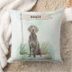 Add cozy charm to your home with this Weimaraner throw pillow featuring a watercolor design and customizable name flag. Ideal for breed lovers.