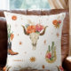 Este encantador design de estilo boho apresenta um tema de vaqueiro ocidental de flores e laranjas, cactos, chapéus e botas cor-de-rosa brilhantes e vívidos. Adicione um estilo ocidental à sua casa com este travesseiro decorativo ou dê um presente para essa pessoa especial para qualquer ocasião.