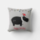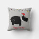 Travesseiro decorativo sazonal Whimsical apresenta a ilustração de hippo preto com o chapéu vermelho de Papai Noel, uma sequência de luzes de feriado e texto personalizável de "Feriados Felizes"