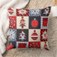Design de Quilt Natal Gingham Whimsical em blues e vermelhos e esbranquiçados - Árvores de Natal, ornamentos e flocos de neve bonitos e com gingham e bolinhas como fundo para os quadrados. Um design de Natal favorito para fazendas e famílias de cabanas. Não há botões reais ou tecido de colcha nesse produto, ele é criado artisticamente para parecer uma colcha.