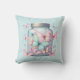 A pillow with a magical image featuring pastel colored butterflies in a jar.