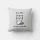 Travesseiro decorativo com um gato engraçado, sarcástico e um pouco assustador que claramente se declara a escolha preferida pelo afeto sobre o cachorro.