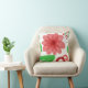 Square Throw Pillow decorative stylish home furnishing decor accessory printed with Whimsical Red Flowers Green Leaves On White Art fun digital graphic Illustration design with soft translucent and solid colors by TheFabricSeal print on demand shop at Zazzle.com #ZazzleMade ©️Original. https://www.zazzle.com/store/thefabricseal