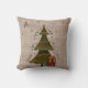 Divertido, árvore de Natal imunda com presentes por baixo. O fundo é um olhar de linho falso em bronzeado e há estrelas rústicas no céu. O reverso tem o mesmo fundo que o de folhas e bagas ocas e diz "Feriados Felizes". Que travesseiro divertido para decorar seu país em casa este Natal!