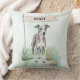 Add cozy charm to your home with this Whippet throw pillow featuring a watercolor design and customizable name flag. Ideal for breed lovers.