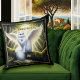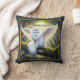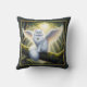 Travesseiro com pintura de um gato anjo branco em uma floresta exuberante. Feliz Deus!