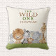 Diseño lindo de Cojin Decorativo para cumpleaños de bebe de cumpleaños de niño o niña con tematica de animales de la selva . Se puede personalizar con el nombre de tu bebe, No lo piense y adquiera el suyo ahora.