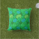 Travesseiro ao ar livre em uma vintage William Morris, Art Nouveau, impressão floral de crisântemos estilizados, melhorado digitalmente e colorido, em verdes limões leves e profundos e aqua, sobre um fundo verde esmeralda