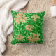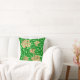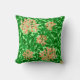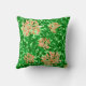 Travesseiro decorativo de um padrão de flores de chupa de mel do tipo William Morris Art Nouveau, sobre um fundo de vinha e folhas - flores de pêssego / damasco e creme, com folhas verdes esmeraldas, contra um fundo verde pastel