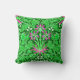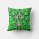 Travesseiro decorativo de uma safra William Morris de ritmos, tulipas e folhas, em tons de verde limão, acentuados com cor rosa e branca fuchsia, sobre um fundo verde esmeralda profundo